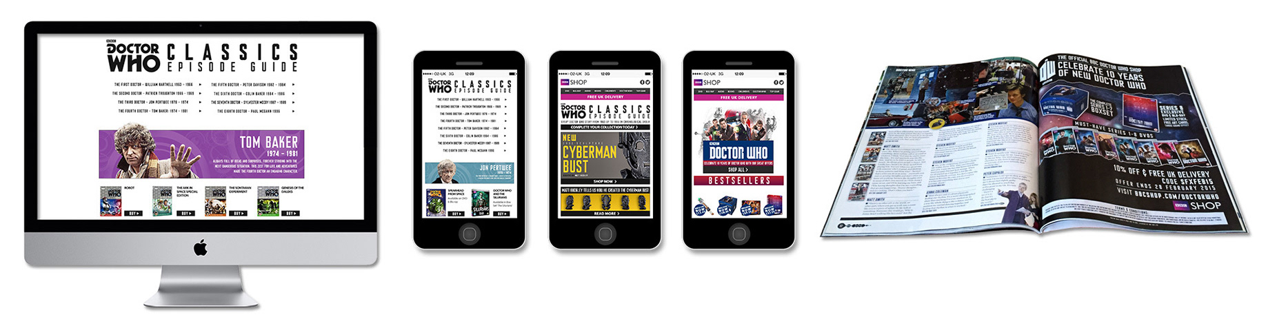 As part of the team working on the re-launch of BBC Shop, I designed and built responsive assets, email campaigns and pages for top BBC properties such as Doctor Who, Top Gear, Great British Bake Off and more.